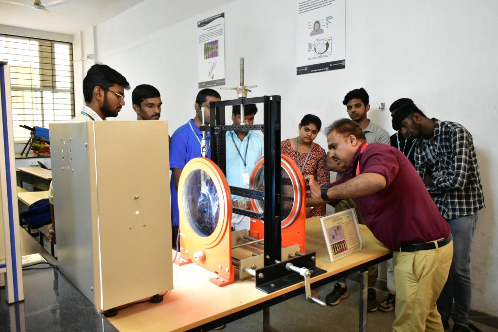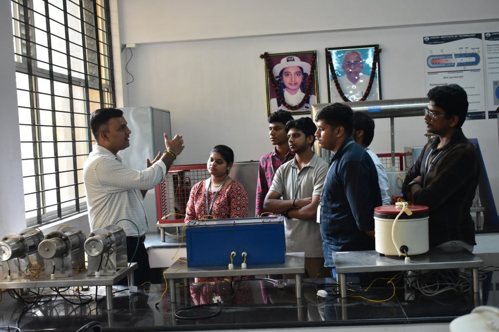 The Heat and Mass Transfer Laboratory in the Mechanical Engineering Department provides practical understanding of the fundamental principles of heat transfer and mass transfer. The laboratory is equipped with experimental setups that demonstrate different modes of heat transfer such as conduction, convection, and radiation, along with mass diffusion processes. Through hands-on experiments, students analyze heat transfer coefficients, temperature distribution, and thermal performance of various systems. This laboratory helps students connect theoretical concepts with real-world thermal applications and develop strong analytical and experimental skills in thermal engineering.