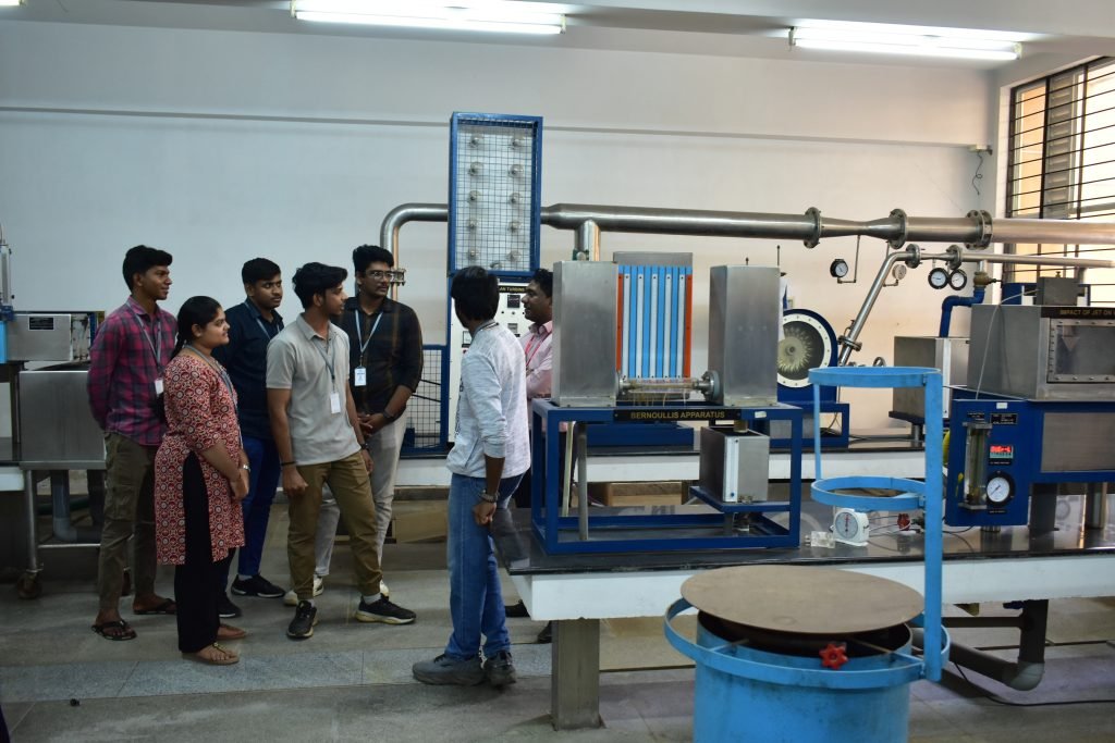The Fluid Mechanics Laboratory in the Mechanical Engineering Department provides students with practical exposure to the fundamental principles of fluid flow and its applications. The laboratory is equipped with experimental setups to study concepts such as fluid properties, flow measurement, pressure distribution, and energy losses in pipes and channels. Through hands-on experiments, students analyze the behavior of fluids under different conditions and verify theoretical laws related to fluid motion. This laboratory helps students develop a deeper understanding of fluid mechanics and enhances their analytical and experimental skills for real-world engineering applications.